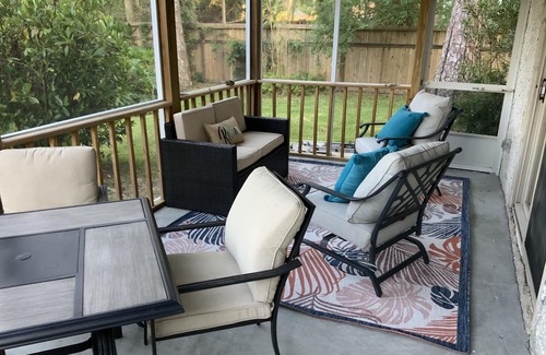 This home features, 2 separate living spaces under 1 roof. The Ground floor features a full 1 bedroom apartment. The Second floor features 3 bedrooms, 2 bathrooms, large kitchen, dining room, and a living room that can accommodate everyone. Up to 10 Guest can sleep here comfortably. And well within biking distance to the Shops, Beaches, and the Pier. We are within walking distance to the World Famous Southern Soul BBQ, and Redfern Village.