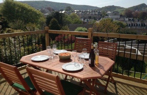 On the ground floor, the original tile corridor from the stained-glass porch leads to the light and spacious open plan kitchen diner area, opening onto a large decking area overlooking a private garden and the hills. The west facing garden upper and lower decking areas with barbecue are the perfect places for delightful outdoor evenings.