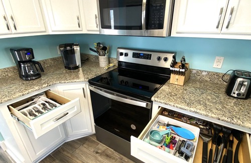 We also provide linens, bath towels, beach towels, 6 beach chairs and more for a one stop, fun filled vacation! New fence for back yard May 2021 with privacy fence for you, your kiddos, and pup to enjoy.