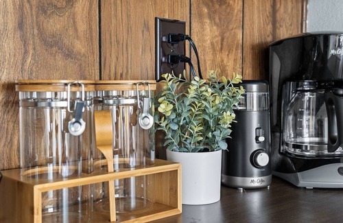 COFFEE BAR: Coffee pot, Keurig, Electric water kettle, decaf and regular coffee, assortment of k-cup options, assortment of teas