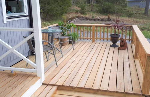 A warm welcome to stay in this nice fresh cottage located next to the edge of the forest, secluded with a view of the forest and meadows. You are welcomed into the cottage which consists of one level, large hall, bathroom with shower a kitchen with stove 2 plates, coffee maker, fridge with freezer compartment. A round table and chairs that you can enjoy breakfast on, as well as a sofa bed that you can easily make out into a comfortable bed This cottage is perfect for 4 people. The terrace invites you to the first coffee / teacup of the morning, and here you can also grill the evening's dinner. With only 20 minutes by car you come to beautiful Värmskog which is located next to Lake Värmelen here there are very exciting things to experience such as hiking trails, silver mines, bathing places and the giant cauldron a rock formation from the Ice Age and Värmskog's popular café that offers its extra large shrimp sandwiches. A small town with a lot to offer. If you want to try your luck fishing in Lake Vänern, it is free and you do not need a fishing license to fish here.