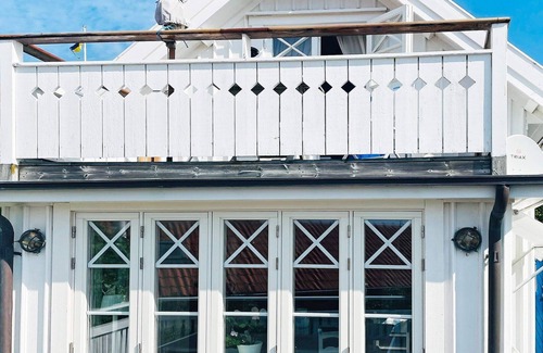 Welcome to a magical house with a sea view over Kyrkesundet! Here, breakfast can be enjoyed on the balcony with a breathtaking view in the morning sun. With only 20-30 meters down to the water via a charming alley between the houses, this is a difficult location to beat. The main house is equipped with modern amenities and has a kitchen that opens up to a light and airy living room. There is a lounge group here for conversation and relaxation. In the contemporary bay window, there is a dining table for about six people, with a view of the sea. From the living room you reach the large balcony, which has room for 8-10 people, and an electric grill is available for your barbecue evenings. On the same floor there is also a toilet with shower and wash basin, as well as a washing machine and tumble dryer. Upstairs you will find the master bedroom with a comfortable double bed, an office space for working remotely, and a small living room. The balcony on this floor is the house's crown jewel, spacious and with an unbeatable view of Kyrkesundet. In the annex there is a bunk bed with a slightly wider lower bed, which makes it comfortable for two people and cozy for three. There is a bathroom with a toilet, wash basin and shower. For those of you who have an electric car, there are chargers in the boat association's parking lot, where you can park as long as you charge, for a fee. Fiber is included in the house, which allows you to stream TV and work smoothly online. Skärhamn, the nearest town, offers a rich selection of restaurants, the popular Watercolor Museum, and has fine grocery stores with a good selection. Fishing boats dock at the jetty during the summer where you can buy freshly caught crayfish. Further up the hill it is possible to rent a kayak to explore the archipelago. The ferry, which runs right below the house every half hour (adjusted depending on the season), takes you easily to the nature reserve on Härön, where Restaurang Magasinet serves both lunch and dinner. This is a home that offers both comfort and stunning views – perfect for relaxation and adventure.