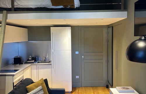The studio has a small living-kitchen area (washer dryer, induction table, microwave oven grill ...), it has a view of the Citadel of Corte.