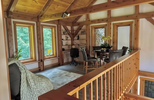 Book your stay now at our breathtaking 4-bedroom, 3-bathroom mountain retreat nestled on the New Hampshire-Vermont border. Enjoy stunning mountain vistas and direct access to hiking trails, perfect for exploring the outdoors. After a day of adventure, unwind in the year-round hot tub or cozy up by the fireplace.