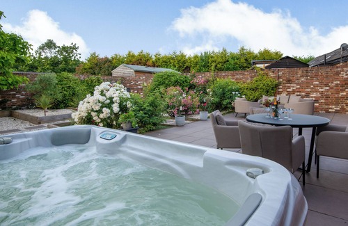 Bedroom 5: Double (4ft 6in) Bed, 3 x Single (3ft) Beds, Smart TV. Oil central heating, electricity, bed linen, towels and Wi-Fi. Travel cot and highchair available on request. Enclosed lawned garden, patio, sitting-out area, garden furniture, summerhouse, children’s play area and BBQ. Hot tub for 8 (private). Private parking for 5 cars. No smoking. Please note: steps in grounds.. This stunning 15th-century house has been kitted out to an extremely high standard to make an impressionable stay for a truly memorable getaway, tailored to be a stylish retreat for laughter-filled celebrations and unforgettable moments, with a very attentive host to ensure all your needs are catered to for a hassle-free, truly relaxing stay. Boasting charming, rustic structure with thick beams, designed with luxury in every corner, Yew Tree Farm makes for the perfect escape, offering extra touches of grandeur such as a fully equipped bar and a large bubbling hot tub overlooking the surrounding countryside, perfect for enjoying a glass of fizz under the starry night sky.