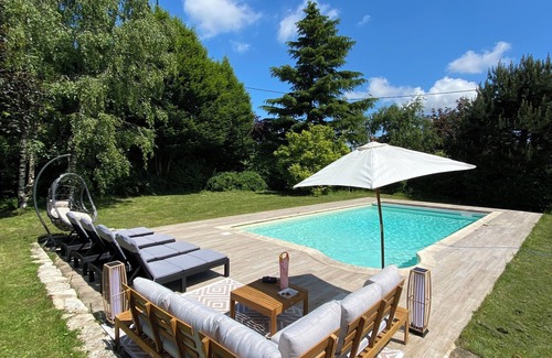 Yes, this Montfey house has a swimming pool. Check the Facility Overview section for details about the pool and other available facilities.