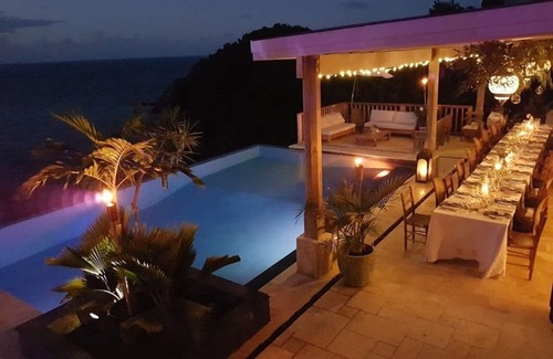 Set in a spectacular clifftop location next to one of the most beautiful and secluded beaches in Tortola, The House of Rogues is a rare, stylish architectural gem set in lush terraced gardens. The large infinity edge pool is designed to mirror the natural beauty of the sea below and the sweeping views along the rugged Atlantic coast. With 5 bedrooms the house can accommodate up to 10 guests. The décor, furnishings and high end appliances are an eclectic mix of antique and modern chic.