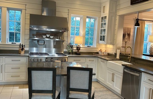 The house is spacious, professionally decorated with Viking appliances in kitchen and includes 5 bedrooms and 5.5 baths. The neighborhood is located in the prestigious WaterSound Bridges neighborhood that is gated and has 24/7 security. The home and carriage house sleep 11 guest comfortably with 4 king beds en suites and an additional room with 3 twin beds with a trundle. Highlights of the home include a vaulted screened porch, brand new deck with fireplace and grill off the kitchen, carriage house and 2 wet bars with wine fridges in each. This is a premier community: The Bridges, offers the finest amenities including heated pool, private access to non-crowded beaches plus access to playground and putting park at WaterSound main. You have Gulf and Lake view from multiple floors. Dining Room offers seating up to 12, kitchen breakfast bar and additional outside dinning on patio by the fireplace under the stars and tivoli lights. The kitchen is fully stocked with premium stainless steel appliances including premium cooktops/oven and utensils.