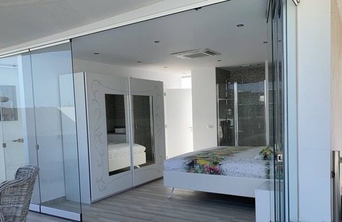 5 * Penthouse, on the corner of the top floor, total floor space 234m2. Very luxuriously furnished, 2 bedrooms on the ground floor, each with its own bathroom with walk-in shower. At the front and rear of living area 2 large terraces with luxury lounge furniture. On the sun terrace above the penthouse, we have developed an extra bedroom with a luxurious bathroom. Separated by folding glass walls. Access to two large terraces, with sea or swimming pool view. Terraces on top floor with dining table, lounge seats, and sun beds. Can's largest resort pool. Islands, 1200m2, separate toddler swimming pool. Near the sea, beach and Club Bahia Beach with its Balinese sun beds. The village of Palm-Mar is very quiet, not really touristy. However, it is very centrally located to all popular tourist attractions, such as Aqualand, Siam and Jungle Park. Also the port of Los Cristianos nearby, as well as the sandy beaches of Playa de las Americas. No less than 4x 18 Holes golf courses within 15 minutes. On the village border, 3 minutes away is the 9 Holes golf course Los Palos. The village is enclosed on both sides between 2 beautiful protected nature areas, ideal for hikers and mountain bikers.