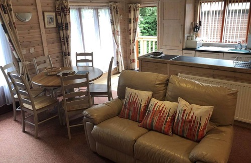 The Lounge area has 2 comfortable leather sofas. Entertainment comprises 42" TV and internet access via the lodges own private WIFI.