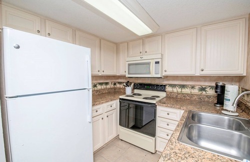 Ceiling fans are found throughout this nicely furnished unit. The bright new kitchen is fully equipped including icemaker and built-in microwave.