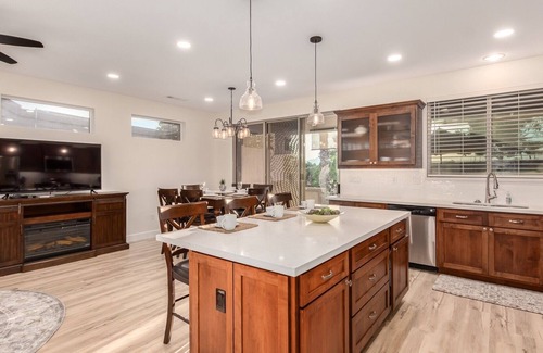 55+ Sun City Grand! Golf Course Front Private Hot Tub and Fire Pit! is located in Desert Breeze. 55+ Sun City Grand! Golf Course Front Private Hot Tub and Fire Pit! provides accommodation, featuring Wheelchair Accessible, Bedding/Linens, Internet, among other amenities. This House features Wheelchair Accessible, Bedding/Linens, Internet, to make your stay a comfortable one.