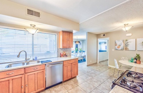Sleeps 1 to 12 people, with 10 Plush Beds. Quite, Modern, Large 5 bedroom House, located conveniently less than 2 Miles from the Strip. Pool, TV, Parking, Modern Kitchen, BBQ Grille, Washer/Dryer, AC, Heat, Shopping, Night Life, Tourist attractions and mach more!