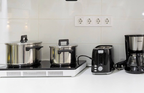 Enjoy the free breakfast of toast, cheese, butter and jam, milk, coffee, tea and cereal. Our kitchen is fully equipped (dishwasher, mini oven, electric kettle, toaster, coffee machine, fridge, cooking panel, pans, cutlery, etc.)