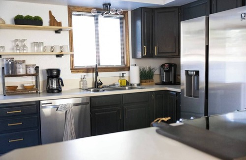 Cozy up in this renovated 5-bedroom retreat just a short walk to Lake Cascade & downtown! Wake to fresh snow, rev the sleds, and ride straight from home to the frozen lake for world-class 🎣 ice fishing and winter fun. After a day on the ice, unwind by the 🔥 fire pit & BBQ or relax inside by the fireplace and 65” Smart TV. Chef-ready kitchen complete with everything for effortless meals. Fun for the family with bunks, board games & arcade games.