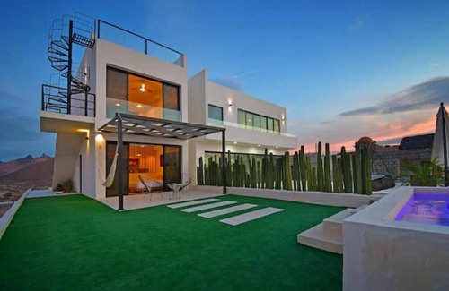 Casa Royce Villa is a unique property located in the Maravia Country Club Estates community, 20 minutes drive from La Paz. Spectacular views of the ocean and Espíritu Santo island, a private infinity pool, Mini Golf.minutes from La Paz’s best beaches Balandra and Tecolote. This is one of those places you will boast about visiting. Starlink WIFI, 24/7 security, peaceful and quiet surroundings. It is OFF GRID, AC available in all bedrooms.