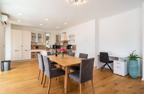 Spend your vacation in this stylish stone house in Sumartin on the island of Brac. The property consists of two connected vacation homes, each with its own entrance, so you can enjoy your privacy and also retreat. In addition to the bright and modern interior and the views of the outdoors, you will find a fully equipped gym in both buildings. Go about your daily exercise routine and then come together by the pool to sweat it out, take a quick shower and refresh yourself in the pool. Enjoy your meals on the covered terraces overlooking the sea and experience a fantastic view over the whole of Sumartin from the roof terrace.