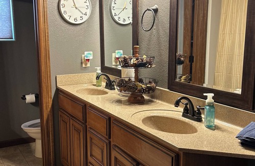 Relax with the whole family or a few close friends at this peaceful residential family home in the Beautiful Black Hills. Conveniently located between Rapid City and Sturgis in a peaceful residential family neighborhood. This home has 6 bedrooms, 2 bathrooms and a 3 stall garage. In the morning enjoy a cup of coffee on our covered front porch and end your day with our gas fireplace and grill on the back deck after exploring the beautiful Black Hills.