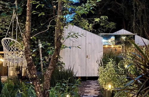 live the experience in a glass cabin for people who like to relax in the middle of nature without having to leave the city at 5min Santa Fe. 9m2 cabana private bathroom, smart tv wifi, private Jacuzzi, shampoo, 2 towels, coats and mask. The cabin is located in a space of 500m2 where there are other cabins which share common areas: campfire, projector garden rooms and dining rooms. extra sauna/decoration