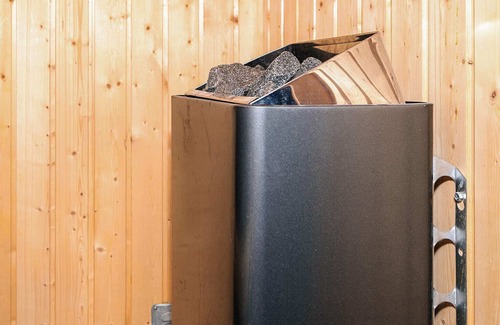 Layout: Kitchen(cooker(electric), coffee machine, microwave, dishwasher, freezer(60-99L), fridge-freezer), Living/bed room(TV, high chair, chromecast), bedroom(double bed), bedroom(double bed), bedroom(double bed), bathroom(washbasin, shower, toilet), bathroom(tumble dryer, washbasin, shower, toilet, washing machine), Bubble bath(indoor, heated, 2 persons), sauna(indoor, 4 persons), heating(electric), terrace, garden furniture, sun loungers, air to air heatpump