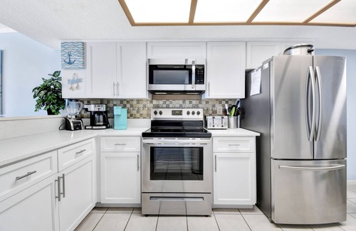 These beautiful and recently renovated units offer breathtaking views of the Gulf of Mexico, making for an unforgettable stay. With solid surface countertops in both kitchens and bathrooms, vanities, and stainless-steel appliances, you'll feel right at home. Plus, the units are situated in the front row of the Beach Cottages, offering the closest proximity to the beach and the best views available.