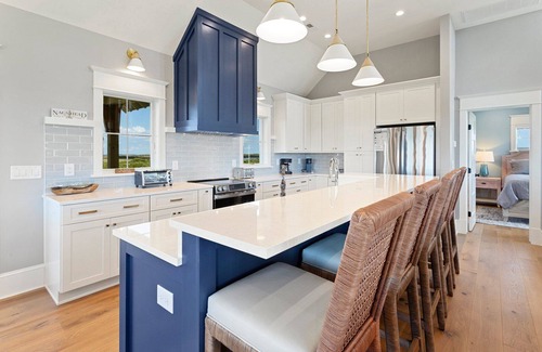 Prepare for ultimate R&R on the Top Level where you'll find a spacious Living Area with cozy furniture, brilliant views, and lots of natural Outer Banks sunlight. Take in the best of both worlds with views of the ocean and the sound as you relax with a cool drink and blenty of OBX sunshine! Whip up a meal the whole family will love in the Kitchen with modern appliances and enjoy it together in the beautifully decorated Dining Area or step out on one of the decks for some al fresco dining. Another King Master Bedroom with a Full Bathroom ensures a little extra luxury to rest up during your stay. Covered decks on both the front and rear of the home invite you to soak in the views, while the Captain's Watch is a unique spot to take in a stunning sunrise over the ocean or curl up with a good book and a selection of board games.