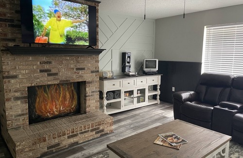 This amazing home has been completely remodeled and has a 90s theme. There is a secret game room behind the bookshelf in living room that has arcade style game, Nintendo, and Super Nintendo. Our one of a kind selfie wall includes props and is perfect for making memories of your memorable stay. The home is centrally located just outside of Jackson and is close to baseball fields, Bass Pro Shop, Outlet Mall of Mississippi, Jackson Intl. airport, Brandon Amphitheater, multiple golf courses, and downtown Jackson. For your convenience we provide coffee, snacks, fully loaded kitchen with all new appliances, washer and dryer, as well as the basics needed for any stay. Two of the bedrooms have king sized beds and the third has a queen/twin bunk bed. All mattresses sat memory body cooling foam.