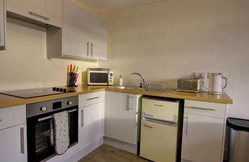 The kitchen and dining area are fully equipped with all the essentials that you should need throughout your stay. There is an electric oven and hob, a microwave, fridge & freezer, and so much more!