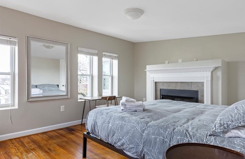 This grand historic home is located within walking distance to the Capitol, Union Station, Eastern Market, Barracks Row and the H St Corridor. Boasts 4 bedrooms. Master has a queen bed, Center bedroom a King. Rear bedroom is a twin over queen bunkbed, and up on the 3rd floor is a king sized bed as well. The third floor can be setup as an optional office with desk and sofa upon request for stays over 45 days.Master bedroom has an ensuite bath with soaking tub and standing shower. Down the hall between the 2 bedrooms is a full bath with tub / shower. In the hall is a full sized washer dryer.