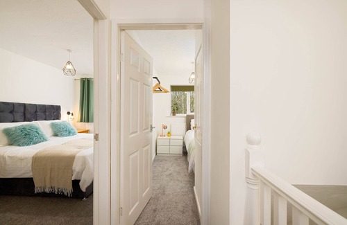 A contemporary detached 3 bed house is located in Manchester. A contemporary detached 3 bed house provides accommodation, featuring Parking, Security/Safety, Bedding/Linens, among other amenities. This House features Parking, Security/Safety, Bedding/Linens, to make your stay a comfortable one.