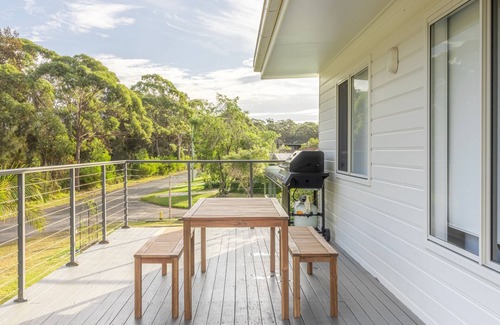Step outside from the living area onto a large deck, furnished with a BBQ and an outdoor dining table. It's the perfect spot for afternoon BBQ’s and enjoying a meal after a day spent on the water or at the beach.