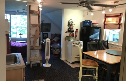 This is a century old Victorian home, located on a tranquil lot with panoramic views of Muskegon Lake. This upper boutique flat has all the modern amenities. This rental has a private entrance, 3 spacious bedrooms, large dining area, comfy living room with cable TV, WIFI, large flat screen TV and a huge picturesque view of Muskegon Lake. Dining area includes stove, refrigerator with freezer, leaf available for dining table, microwave, coffee maker, toaster.... all the accoutrements needed for kitchens. Full walk- in shower, with clean towels & linens provided. This vacation rental is ready for instant relaxation! The entire second story, with all safety measures included - fire ladder for 2nd exit, fire extinguisher, hard- wired smoke & carbon monoxide detectors, all to ensure complete safety of your family & friends.