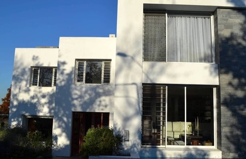 Spectacular minimalist house located in the Carrasco neighborhood, very quiet, tree-lined residential area, close to the Portones shopping and the Carrasco shopping center. It is 10 minutes from Carrasco International Airport and 700 meters from the beach. It has a very nice garden with pool, barbecue and bread oven. It has a cellar, living room with library and desk. All rooms are en suite. The master bedroom has a spa, massage room, jacuzzi. The house has its own parking for 4 cars. It is fully equipped.