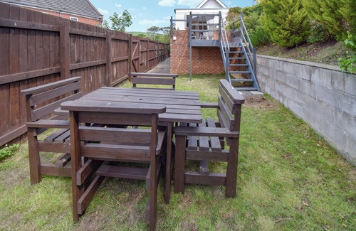 Inside, the inviting lounge features comfy seating and a log-effect electric heater, creating a cosy retreat after a day of exploring. The bright and airy kitchen/diner provides everything needed for a self-catering break, while the charming sun lounge opens onto a private patio, perfect for unwinding with a morning coffee or evening drink. The property offers two well-appointed bedrooms, a double and a twin, along with a contemporary family bathroom featuring a large shower cubicle, toilet, and sink. A further enclosed lawned garden sits at the rear of the property.