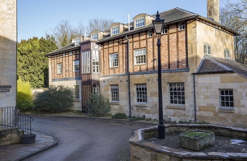 Entrance to the apartment is via one of two outdoor staircases (at each end of the Old Forge) and the shared decking area, which faces a pretty lawn and the footpath to Sudeley Castle.