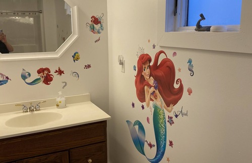 This Disney-themed, 3BR house is just 18 miles to Acadia National Park! Olaf’s Loft is just the place for an economical stay for the family and it is used exclusively as a short-term rental. The house is Disney-themed throughout for your kids (and the kid in all of us). NOTE: Adults on lower beds only - No adults or adult sized children (125 plus lbs) on top bunks! BR1- Lion King (full bed). BR2- Lilo & Stitch - Full futon bunk bed with twin top. BR3 - Frozen-themed kids’ full bunk bed with twin top AND twin trundle allowing kids to sleep in same room! Peter Pan living room. Smart Roku TVs in living room and all bedrooms WE DO NOT SUPPLY any streaming. Bring your own Netflix, Amazon, Hulu codes. Ratatouille kitchen has table and bar seating and has a dishwasher. Little Mermaid full bathroom has combo tub/shower. Laundry room has new washer/dryer. NOTE: This property sits on BUSY Route 1A (called the Bangor Road locally) and YOU WILL HEAR TRAFFIC! Please NOTE BEFORE BOOKING!!!!! This is on the main road toward Acadia National Park. Just pull out and take a left and keep driving until you hit Acadia or Bar Harbor - It's that easy!