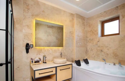 This unique apartment located in the heart of Ortahisar in Cappadocia transforms your vacation experience with its contemporary design, tranquil atmosphere, security, private jacuzzi, and fully equipped kitchen. This venue, which will make you feel privileged, is situated in the center of Cappadocia and offers a distinctive option that you can book through VRBO.