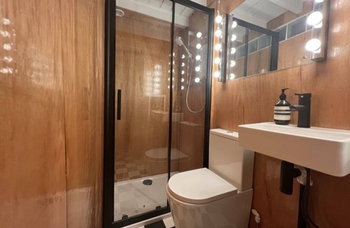 This unique place has a style all its own. An old 30's workshopr/annexe has been converted to mid-century peaceful writing studio. The Studio - your private and self-contained space with kitchen area and shower room and separate double bed-room. This is a quiet space perfect for writing and reading, with a little table & chairs on the pebble courtyard to enjoy the evening sunshine.