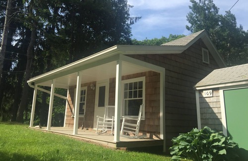 This bright and cozy cottage is perfect for a romantic getaway or a family vacation on the coast. Enjoy your morning coffee from a rocking chair on the farmers porch and watch the joggers and cyclists go by. The cottage is very well maintained and newly furnished - the bedroom features a plush king size bed, while the queen size sleeper sofa in the living room allows for 4 guests. A short stroll to many amazing restaurants (both fine and family friendly dining) - or grab your groceries nearby and use the fully setup kitchen, including stove/oven, microwave, keurig coffee maker and lobster pot! Walk, bike or drive to the beach (1.3 miles) with sidewalks the entire way (guest beach parking passes available).