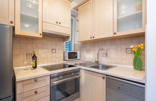 1.Apartment: located on the ground floor of the house, the apartment offers two bedrooms with double beds, a fully equipped kitchen with dishwasher, stovetop, oven, fridge, microwave, coffee machine, electric kettle and other kitchen amenities, a spacious living room with TV, and a bathroom with a shower and washing machine.