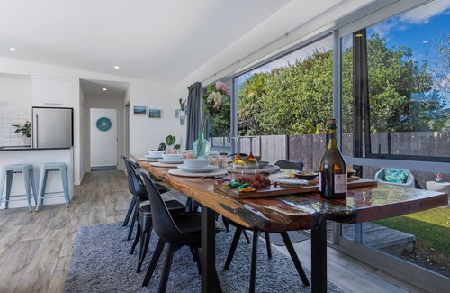 With plenty of off-street parking, you can leave the car behind and explore on foot. A short stroll takes you to the iconic Ninety Mile Beach—one of the world’s best. Nearby, you’ll find great local dining options, including North Drift Café, Bidz Takeaways, Ahipara Bay Motel, and Bayview Restaurant. A convenience store is within walking distance for picking up supplies, while a children’s park on the same street and The Whale Park, just a short drive away, provide fun for the little ones.