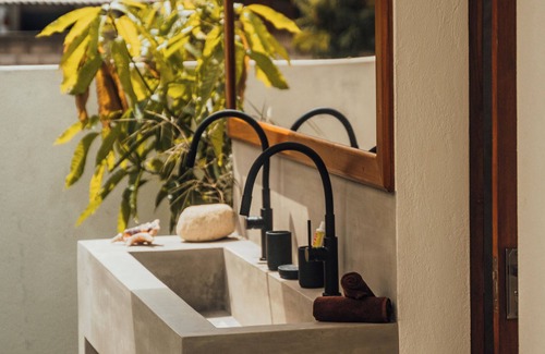 Tucked beside the Main House, the Cabin offers a serene retreat with its own private entrance, blending contemporary comfort with tropical charm. A large queen-size bed, a fully equipped kitchenette, and a spacious wrap-around veranda create a cozy yet stylish space to relax and unwind. The fully walled, partially open-air bathroom lets you enjoy moments of privacy while staying connected to the lush garden surroundings. Just steps from the sparkling waters of Unakuruwa Beach, the Cabin is ideal for solo travelers or couples seeking a tranquil hideaway without sacrificing access to Tangalle’s vibrant town life.