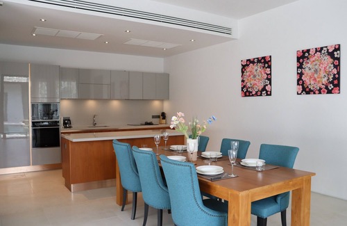 The luxury villa is located in the most prestigious area of Bang Tao Island, close to developed infrastructure: beaches, shops, an aqua park and restaurants. The villa has spacious bedrooms, each with its own bathroom, a fully equipped kitchen, a comfortable dining area and a cozy living room.
