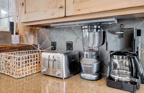 The kitchen features all stainless steel appliances, a dual basin sink, coffee maker, blender, and toaster for all of your cooking needs. With the large dining table and bar seating you will have plenty of space to enjoy a meal all together!