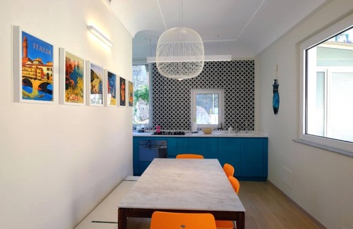 The apartment was completely renovated in 2020 in collaboration with a renowned a team of Italian architects. It is equipped with luxury furniture, electrical appliances, together with premier quality wooden floor. It has 3 bedrooms, living room, 2 kitchens, 4 bathrooms. The apartment is extremely quiet and offers great privacy to the guests. There is also an exclusive top roof terrace of 90sqm, easily reachable through a stylish inner staircase with a magnificent view combining the picturesque surrounding mountains, the Cathedral doom and the Amalfi sea. In the top roof floor, guests will also enjoy fully equipped kitchen and cozy living room for pure relaxation.The house is made up of:An entrance with a large living room with access to two balconies overlooking the mountains and the sea and furnished with a sofa, armchairs and TVThe lounge is connected to a customized and finely equipped kitchen (which also include food a food processor) complete with a spacious dining tablea small bathroom with sink and toilet decorated with handmade tiles.From the living room a long corridor leads to the 3 bedrooms and bathrooms:A bedroom with 2 single beds, nightstands, built in spacious wardrobe and windowA double bedroom with night stands, built in wardrobe and a balcony. The two bedrooms are served by a spacious toilette with sink, toilette and shower all decorated with handmade tiles.A bedroom with TV, built in wardrobe, balcony and ensuite bathroom with sink, toilet and shower all decorated with handmade tiles.