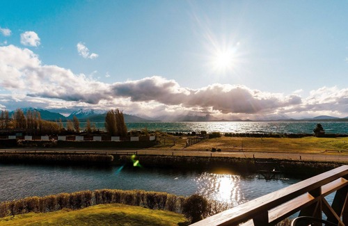 The Resort is located on the shores of Lake Nahuel Huapi, in the town of Dina Huapi, Rio Negro, 14kms from downtown Bariloche. Our flats offer an unbeatable view. The complex has 300 metres of beach on the lake, and a beautiful lagoon with ducks and fish and a beautiful swimming pool only open in summer.