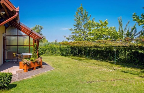 Balatonmáriafürdő 18 km from Keszthely: Apartment house. In a sunny position, 270 m from the lake, 260 m from the beach. For shared use: well-kept garden (fenced), lawn for sunbathing, swimming pool angular (7 x 4 m, depth 120 cm, seasonal availability: 01.May. - 01.Oct.) with internal staircase. Table tennis, patio, garden furniture, barbecue (swing). In the house: WiFi, air conditioning (extra). Grocery 1 km, supermarket 6 km, restaurant 180 m, bakery 1.5 km, café 800 m, bicycle rental 4 km, railway station 1 km, grass beach 100 m, thermal baths "Csiszta" 15 km. Surf school 8 km, sailing school 1 km, tennis 2 km, riding stable 700 m, cycle lane 50 m, children's playground 600 m, fishing possibilities 100 m. Nearby attractions: Hévíz Thermal Bath 20 km, Festetics palace 20 km, Rubin Winery 5 km, Airport 2 km, Somosgegyi Viewpoint 7 km, Siófok - Ferris Wheels 62 km. Please note: Additional accommodations can be booked.