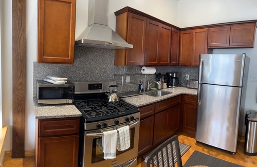 Our cool, modern, luxurious, spacious second floor 2-bedroom apartment has the true NYC brownstone living feeling. The Newly renovated apartment located in the beautiful Clinton Hill/Bedford Stuyvesant area features beautiful hardwood floors, exposed brick walls spacious and open feeling, completely modern and in excellent condition. Guest will have access to cable, WiFi , modern appliances, microwave and coffee maker. Walk up the block or around the neighborhood to sample some of the best dining Clinton Hill/Bedford Stuyvesant has to offer. Take a 30-minute walk to the epicenter, Downtown Brooklyn, the Barclay's Stadium, Brooklyn Heights and the Brooklyn Bridge.