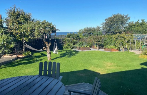 The large, sheltered garden offers cosy spots for dining and chatting in the pleasant sea breeze. While the children play on the trampoline or organise a picnic, you can fire up the barbecue or enjoy a glass of wine on the inviting wooden terrace.