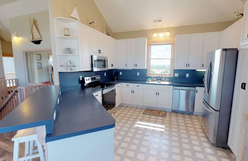Finding Sandity, located on a semi-oceanfront lot on the 4x4 beach, has better "unobstructed" views than most oceanfront homes in the 4WD area. The 3rd level has a spacious open floor plan with kitchen, dining room, living room, and ships watch. There are plenty of windows in this lovely living area with multiple seating options. The king master bedroom off of the living room has access to the front deck with gorgeous ocean views and panoramic beach views. To the rear of the living area you will find a bonus room with a bunk set for the little ones.